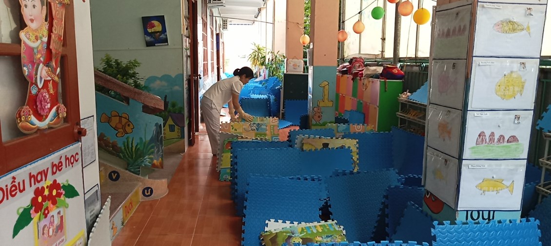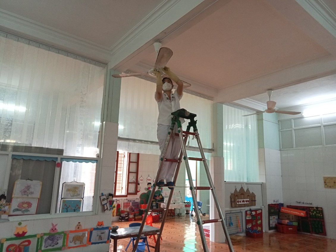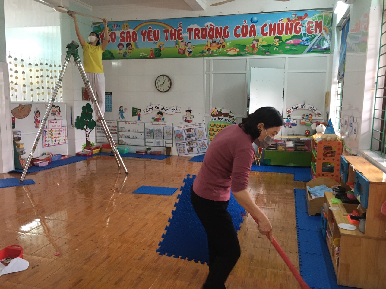 Khi thời tiết từ lạnh rét bắt đầu chuyển sang ấm, nóng là thời điểm xuất hiện nhiều bệnh mà trẻ nhỏ hay mắc phải như bệnh: Chân tay miệng, thủy đậu, cúm, sốt virut, viêm đường hô hấp... Các bệnh này có nguy cơ lây lan giữa các trẻ. Để đảm bảo sức khỏe cho trẻ trường Mn Trường Sơn chỉ đạo giáo viên các lớp tiến hành tổng vệ sinh, tẩy rửa, khử trùng trang thiết bị, đồ dùng đồ chơi thường xuyên, liên tục để đề phòng trẻ mắc phải các bệnh khi thời tiết giao mùa