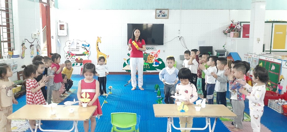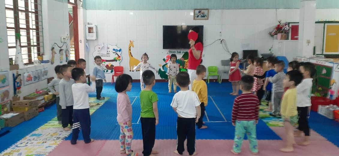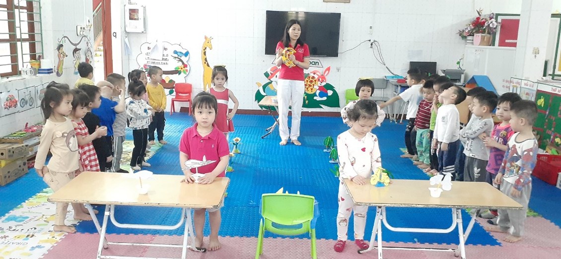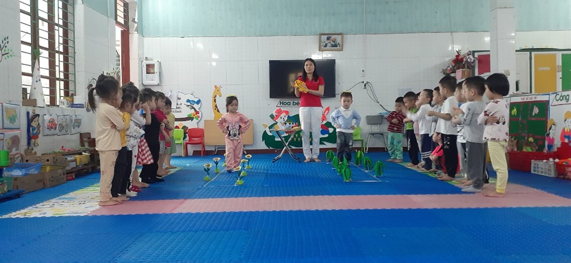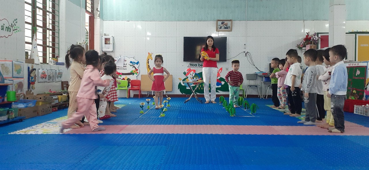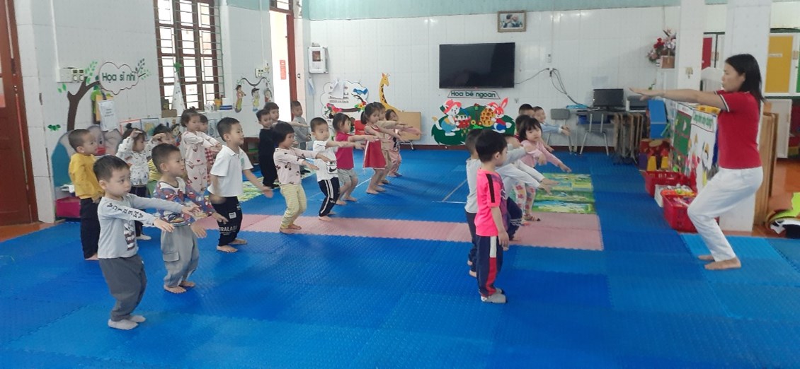 Sau đây là một số hình ảnh hoạt động trong giờ TDKN nhằm nâng cao chất lượng giáo dục phát triển vận động cho trẻ trong trường mầm non của lớp 3C1