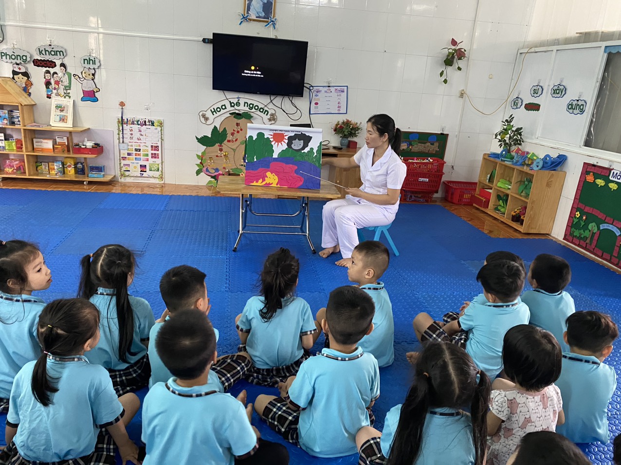 Trong giờ học PTNN thuộc chủ đề Hiện tượng tự nhiên, các cô lớp 4B2 đã cho trẻ đến với hoạt động: Cô kể cho trẻ nghe câu chuyện "Hồ nước và mây" để giúp trẻ PTNN và giúp các bé khám phá về thiên nhiên xung quanh với biết bao điều thú vị, giúp các bé hiểu rõ hơn về mỗi quan hệ gắn bó giữa mây và nước.
