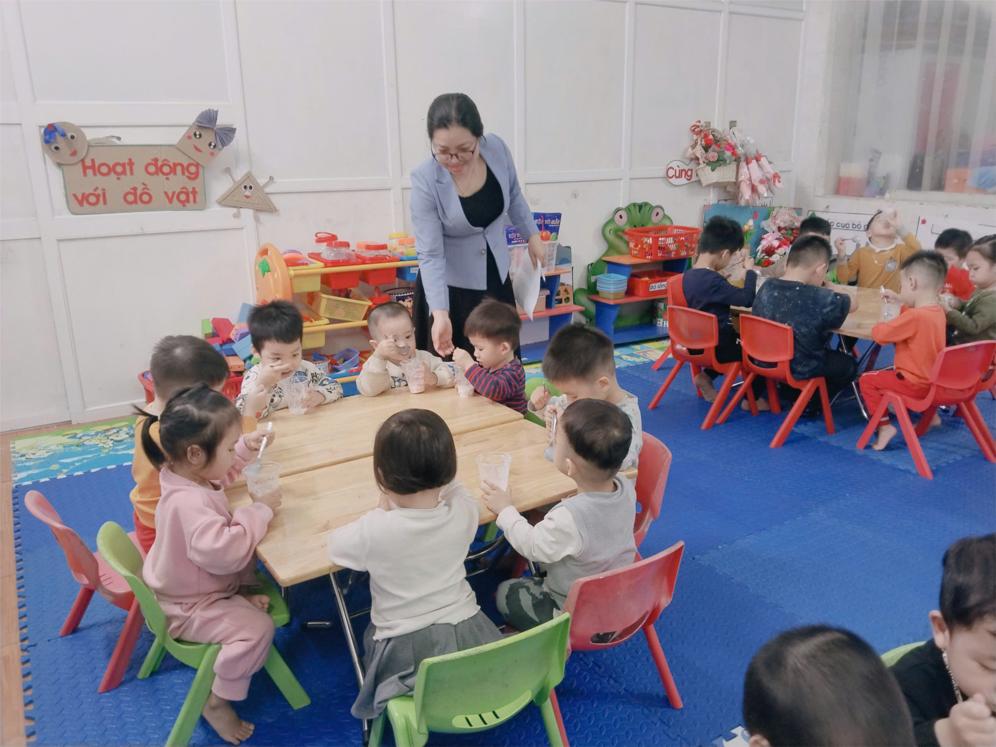 Hình ảnh các bé nhà trẻ cười rạng rỡ khi tự tay làm và ăn món Hoa quả dầm sữa chua là một khoảnh khắc đáng nhớ. Không chỉ giúp bé ăn ngon miệng hơn, hoạt động còn gieo vào lòng bé tình yêu với thực phẩm sạch, thói quen ăn uống ngay từ nhỏ.