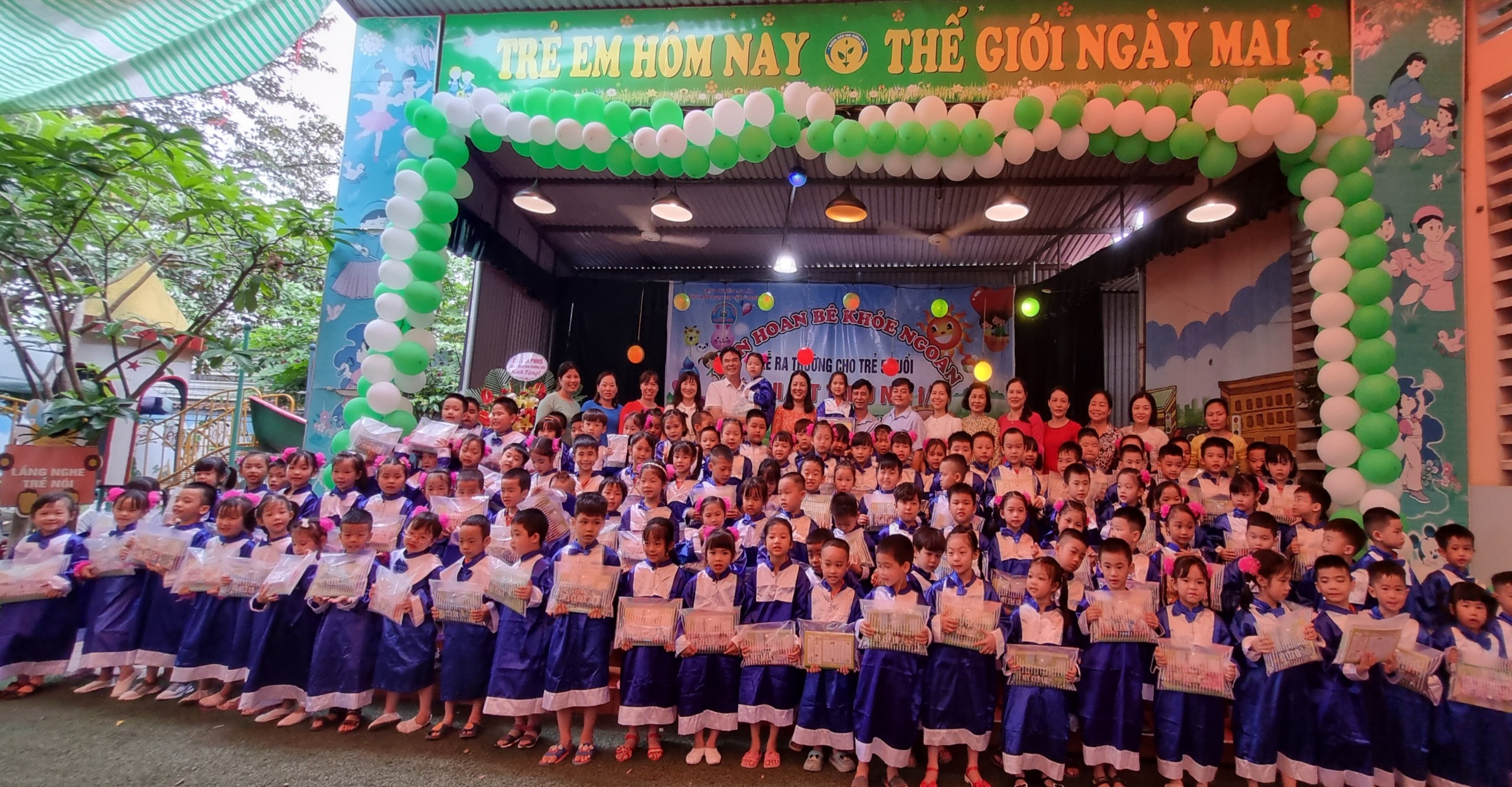 Trong năm học vừa qua, chúng mình đã đạt được nhiều thành tích đáng khích lệ, bé nào cũng giỏi, cũng ngoan và đều đạt danh hiệu "Bé khỏe ngoan- thông minh". Trong ngày vui hôm nay nhà trường đã chuẩn bị rất nhiều phần thưởng để trao giải cho các bé có thành tích cao trong học tập.