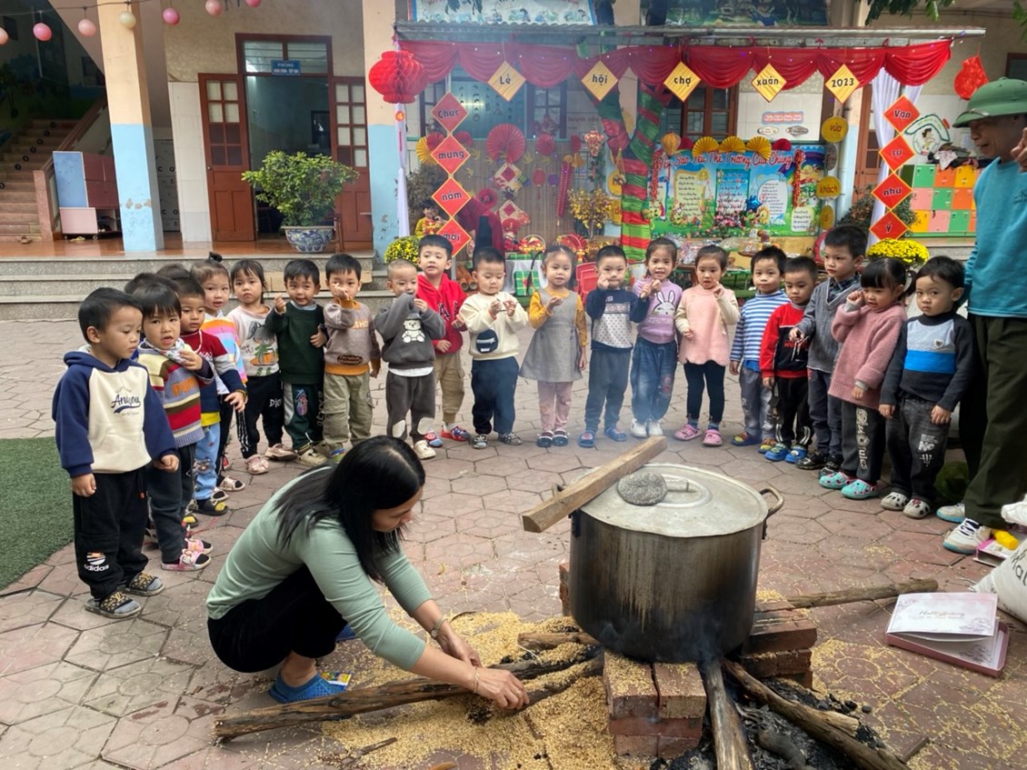 TRƯỜNG MN TRƯỜNG SƠN TỔ CHỨC HOẠT ĐỘNG TRẢI NGHIỆM GÓI BÁNH CHƯNG