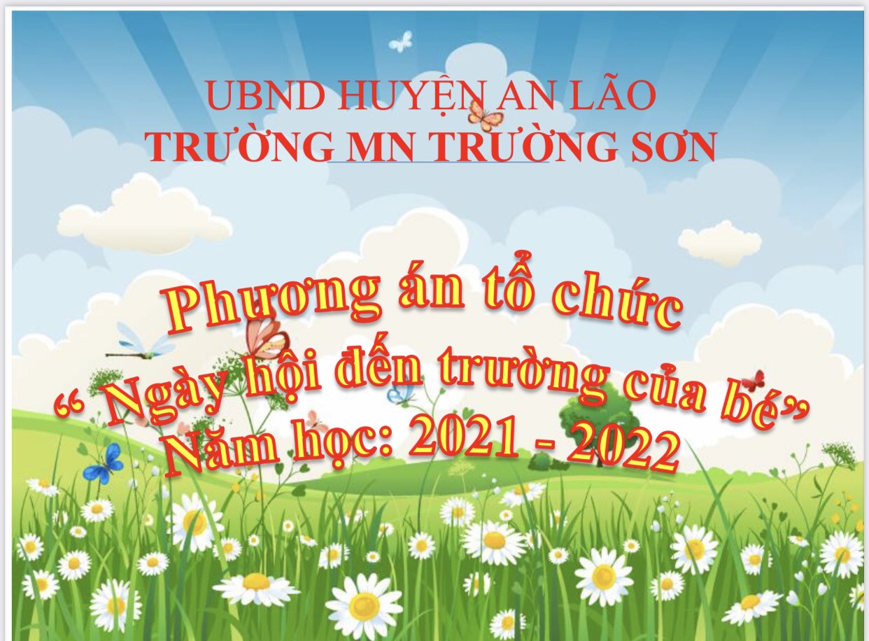 Căn cứ vào tình hình thực tế và hiện nay dịch bệnh Covid - 19 đang diễn ra hết sức phức tạp, ngày nào cũng lên tới 10.000 ca nhiễm, đã làm ảnh hưởng không nhỏ đến "Ngày hội đến trường của bé. Chính vì thế, Trường Mầm non Trường Sơn xây dựng phương án tổ chức " Ngày hội đến trường của bé"
