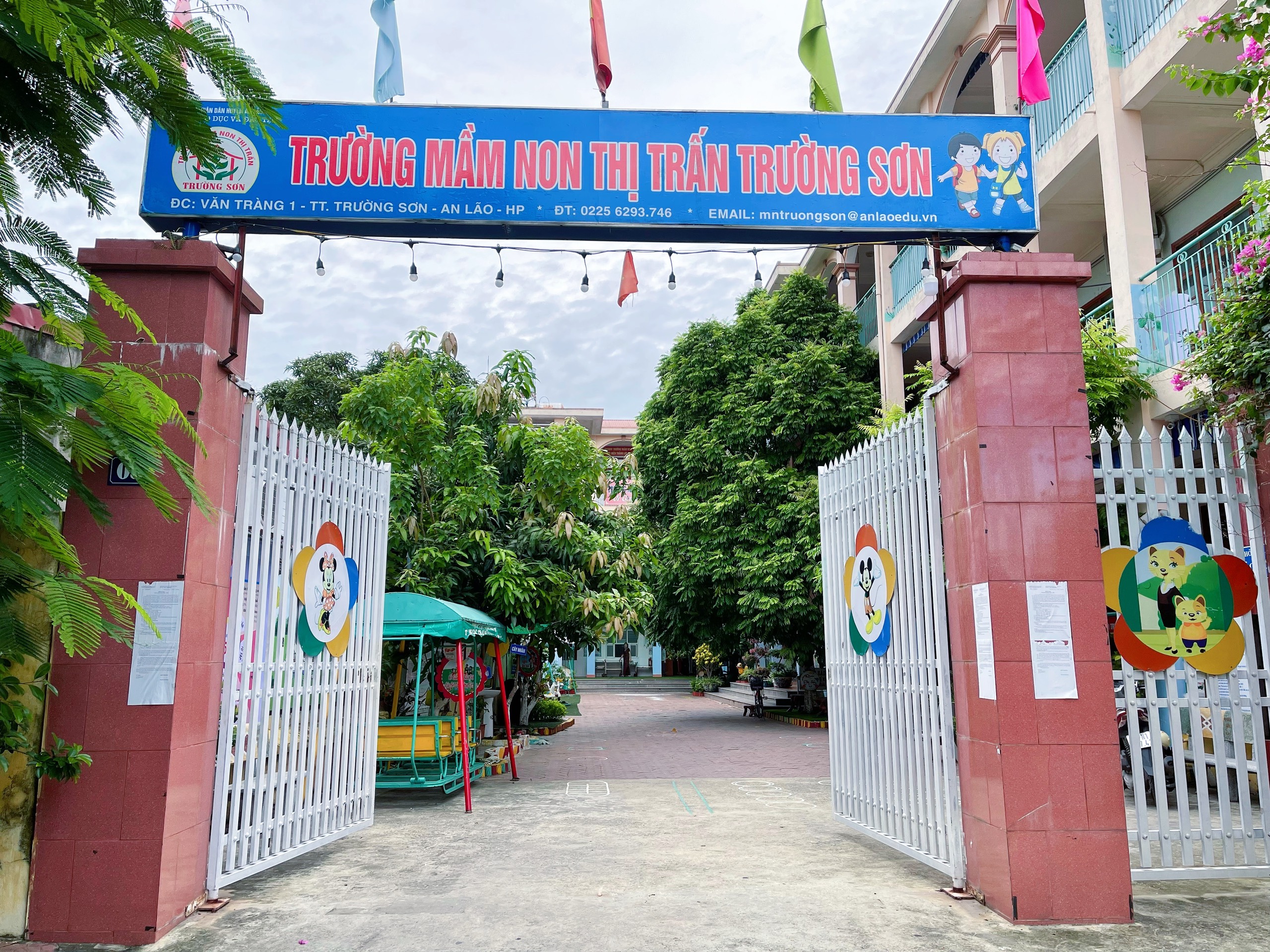 Trường Mầm non Trường Sơn thuộc địa bàn tổ dân phố Văn Tràng 1 - thị trấn Trường Sơn - huyện An Lão - thành phố Hải Phòng với trách nhiệm chăm sóc thế hệ trẻ, đào tạo thế hệ tương lai của đất nước, mầm non của đất nước chúng ta trở thành những công dân ưu tú, năng động, sáng tạo, giàu lòng nhân ái và có đủ tự tin, bản lĩnh vươn cao, hội nhập với thế giới. Cán bộ - giáo viên - nhân viên nhà trường với tinh thần đoàn kết, nhất trí, khắc phục mọi khó khăn, phấn đấu vươn lên, nên trong những năm qua nhà trường đã đạt được nhiều thành tích tốt. Trường đạt danh hiệu tập thể lao động xuất sắc.