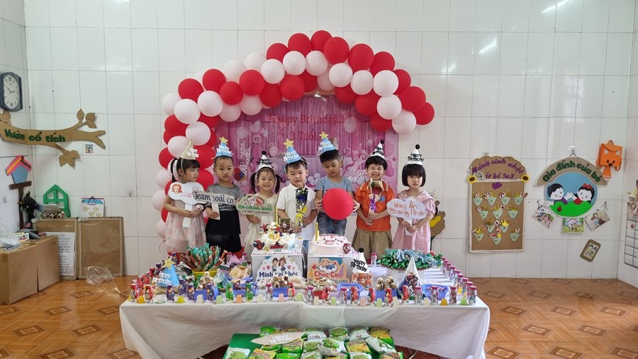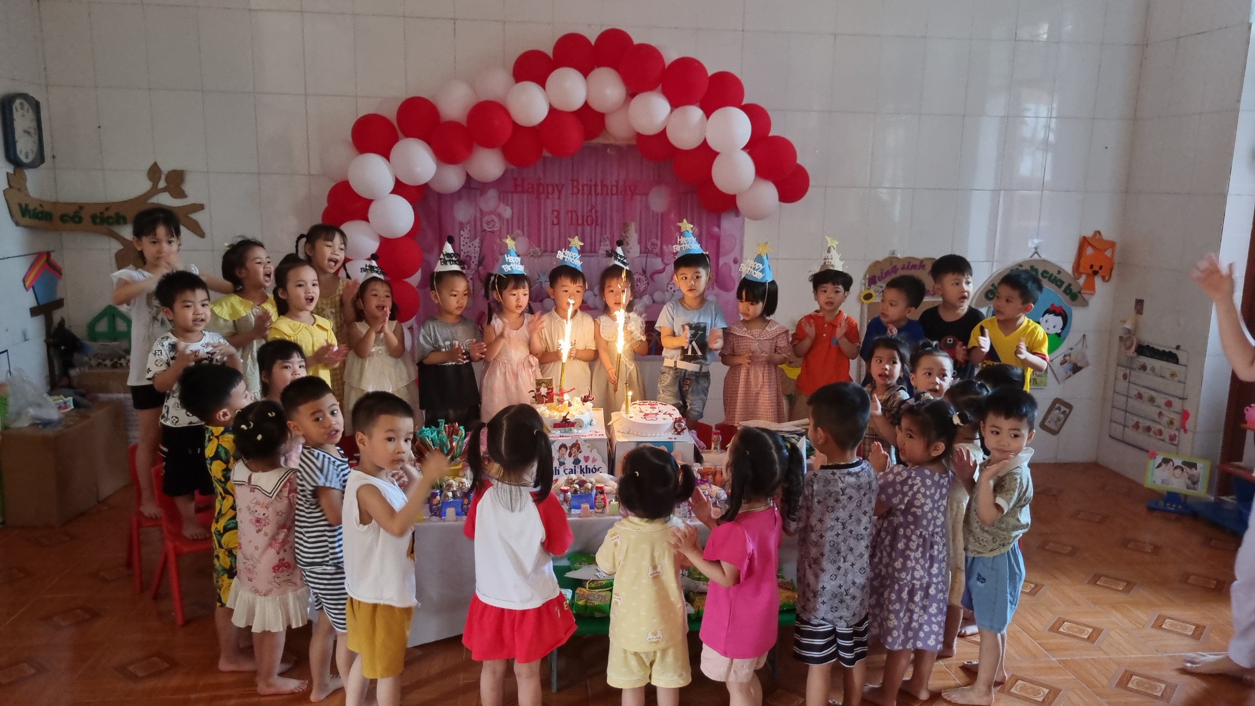 Hàng ngày khi đến trường các con không chỉ được vui chơi với bạn bè mà còn được các cô yêu thương chăm sóc, dạy dỗ. Các cô luôn tạo cho các con môi trường vui vẻ, thân thiện, tạo không khí và tâm lý vui vẻ cho các con khi đến lớp thông qua việc tổ chức các hoạt động trên lớp hàng ngày. Hoạt động tổ chức sinh nhật cho các con là một hoạt động rất ý nghĩa, giúp trẻ hào hứng, mạnh dạn, tự tin, thân thiện hơn khi giao tiếp hòa mình với các bạn trong buổi sinh nhật ngoài ra bữa tiệc sinh nhật tại lớp còn tạo cho trẻ sự vui vẻ phấn khích.