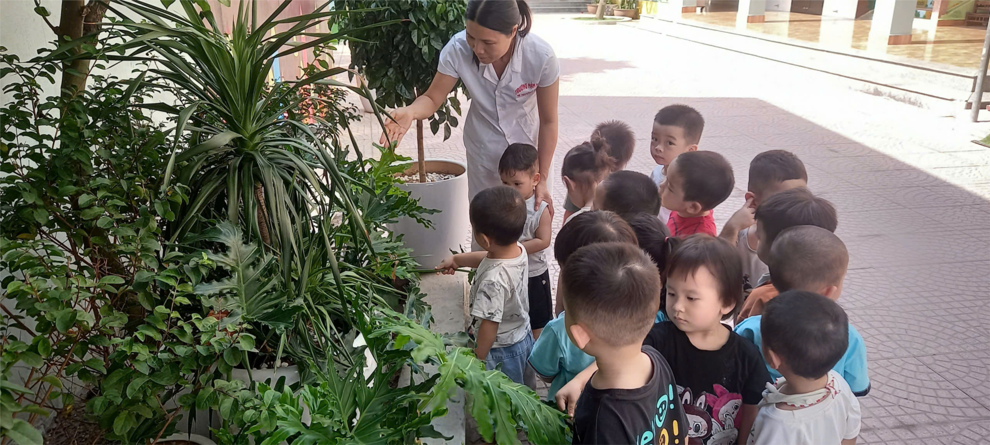 Thời tiết đã vào thu mang theo những ánh nắng vàng trên từng tán lá. Trong không gian trong trẻo ấy, các bé lớp NT1, Trường mầm non Trường Sơn háo hức khi được ra sân trường tham gia vào hoạt động ngoài trời cùng các anh chị. Tiếng cười giòn tan vang lên khắp sân trường, dưới sự hướng dẫn của cô giáo các bé được tham gia tìm hiểu về màu sắc của lá cây, được chơi các trò chơi vận động và chơi tự do . Những khuôn mặt rạng rỡ tiếng cười trong trẻo vang khắp sân trường hòa cùng sắc vàng của lá thu tạo nên khung cảnh thật vui vẻ và đáng yêu. Cô giáo nhìn các con chơi đùa mà lòng đầy hạnh phúc. Hạnh phúc vì được thấy các bé lớn khôn trưởng thành từng ngày...trong niềm vui và tiếng cười. Trên đây là 1 số hình ảnh giờ HĐNT của các bé lớp NT